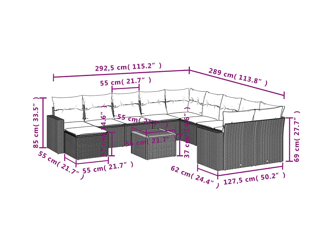Móveis de jardim com almofadas 12 unidades de resina tecida cinza