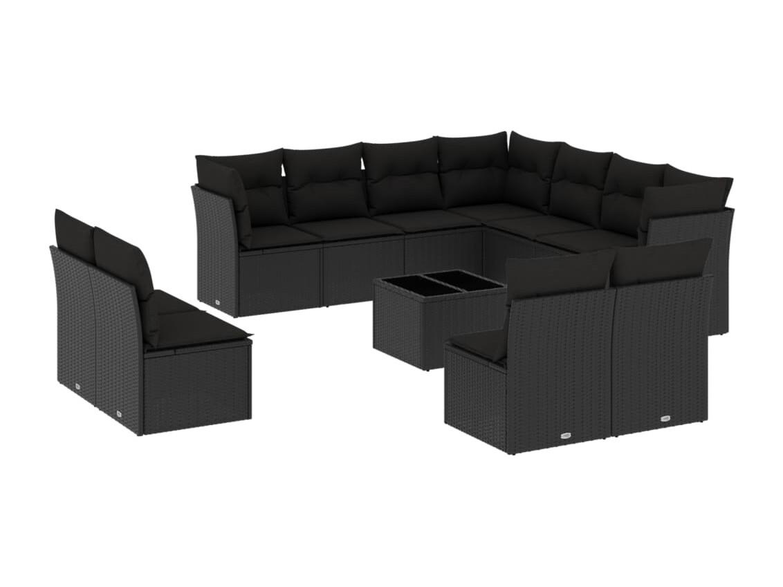12 peças conjunto de sofás de jardim c/ almofadões vime PE preto