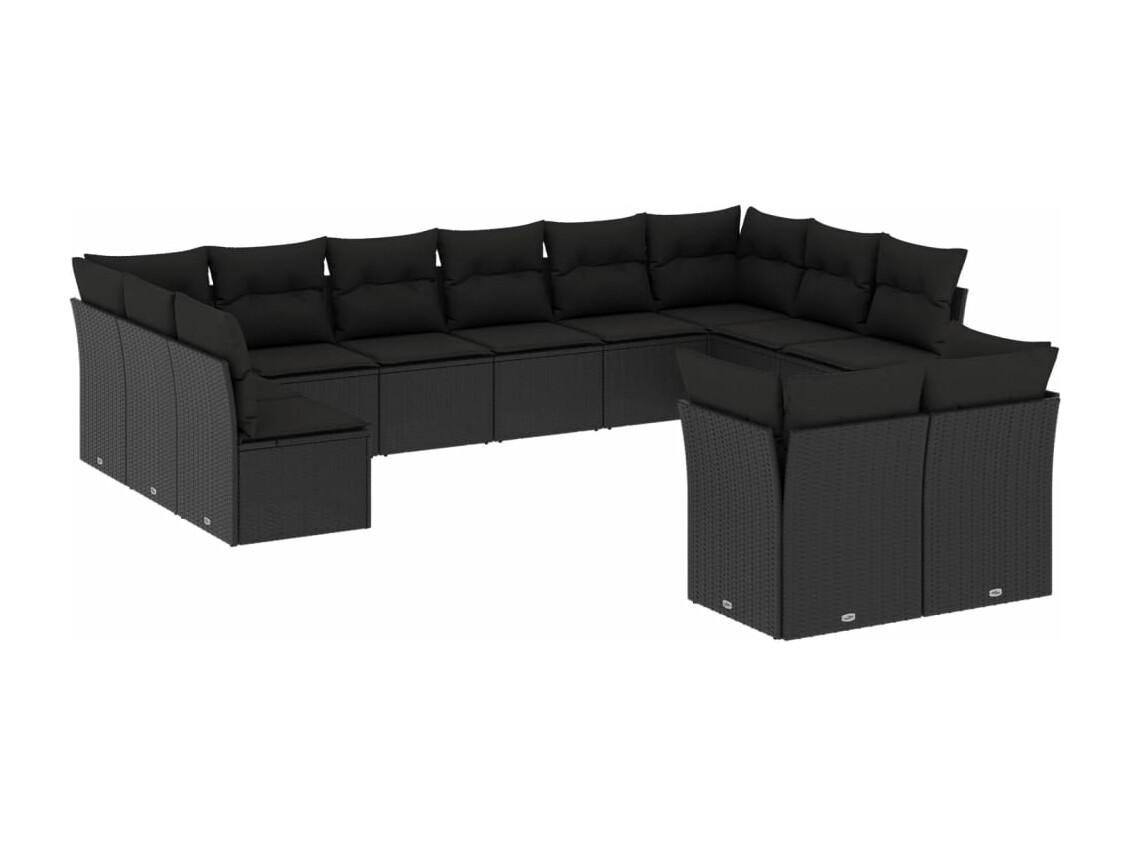 12 peças conjunto de sofás de jardim c/ almofadões vime PE preto