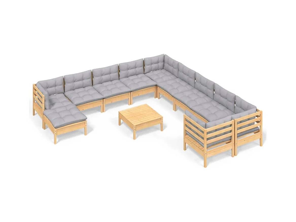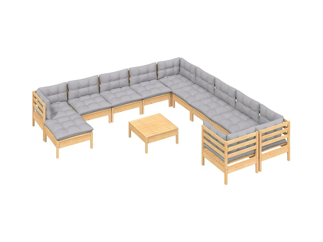 12peças conjunto lounge de jardim + almofadões cinza pinho maciço