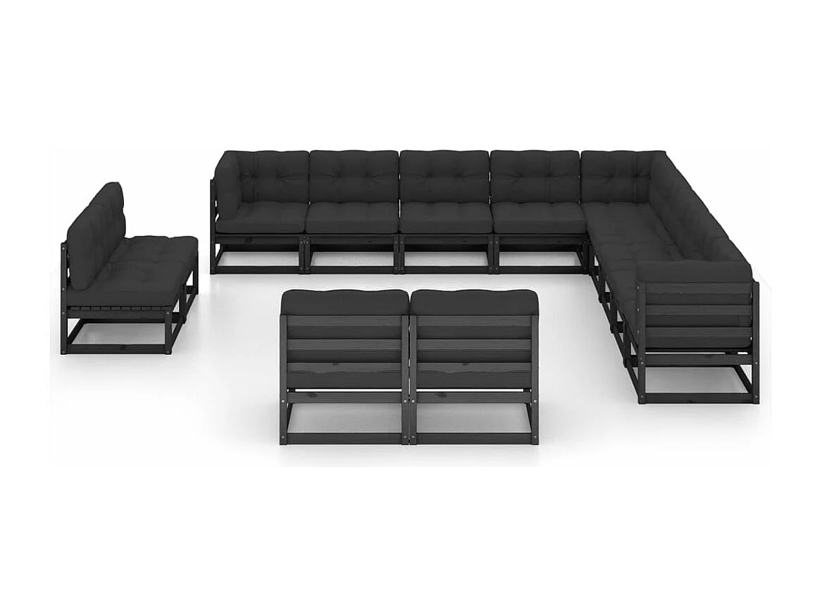 13 pcs conjunto longue jardim c/ almofadões pinho maciço preto