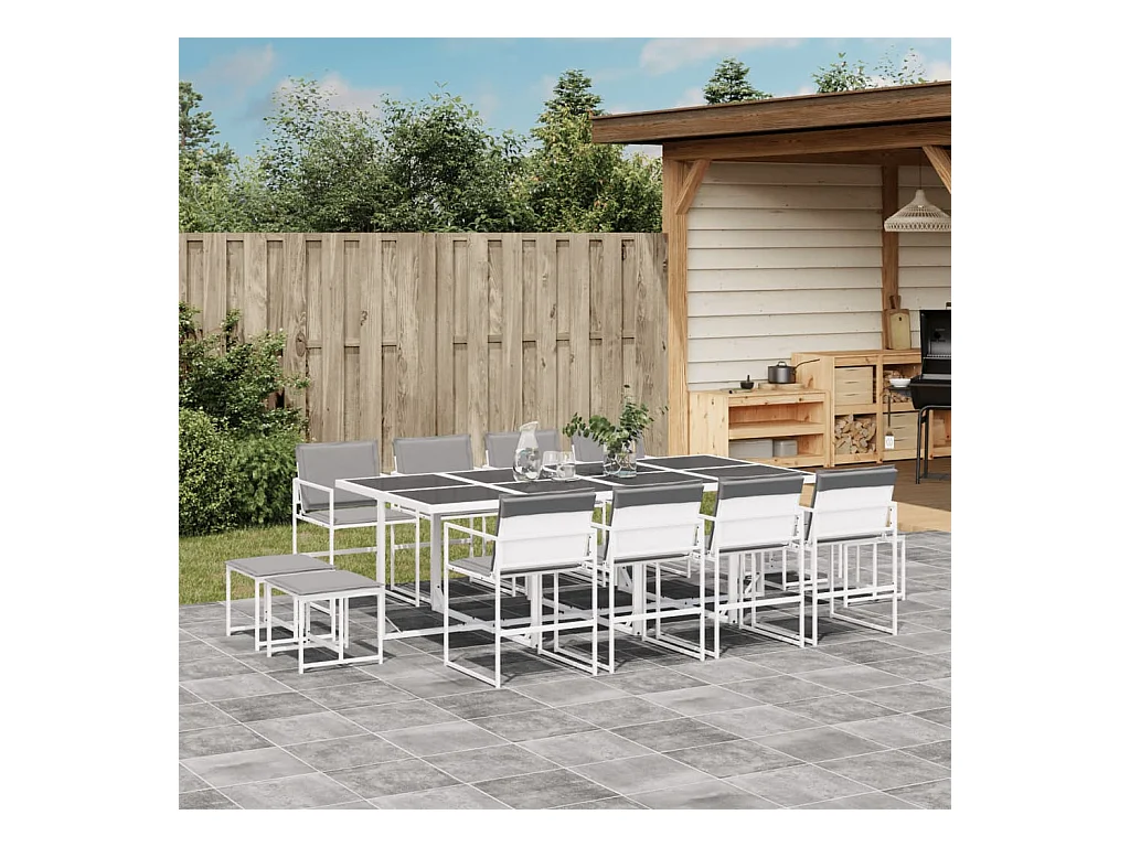 11 peças conj. de jantar para jardim com almofadões textilene branco