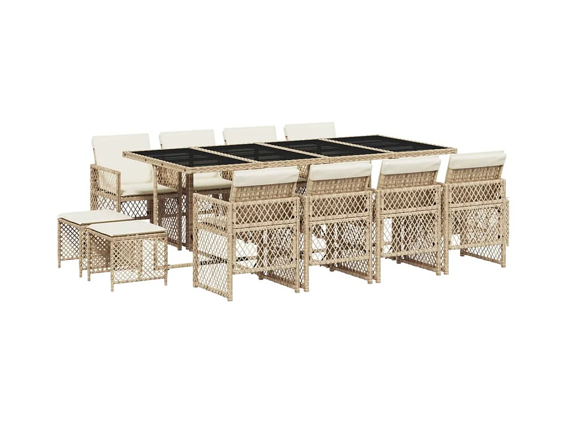 13 peças conjunto de jantar para jardim com almofadões vime PE bege