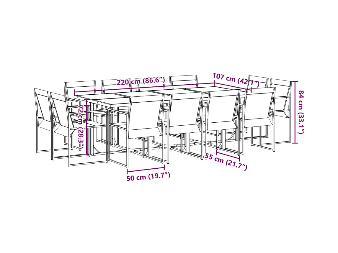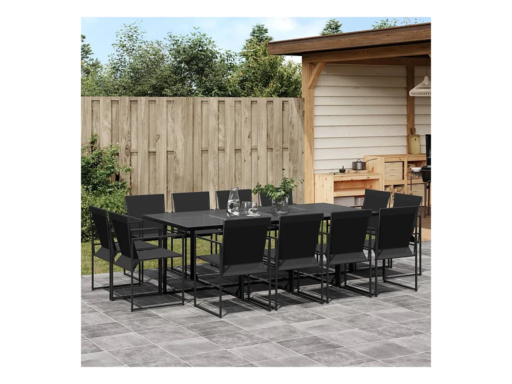 13 peças conj. de jantar para jardim com almofadões textilene preto