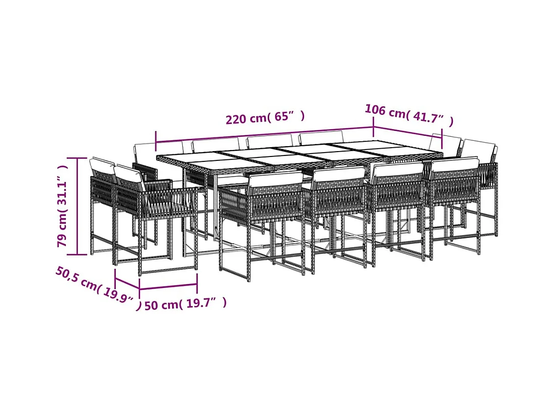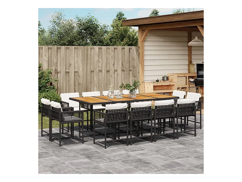 13 peças conjunto de jantar parajardim com almofadões vime PE preto