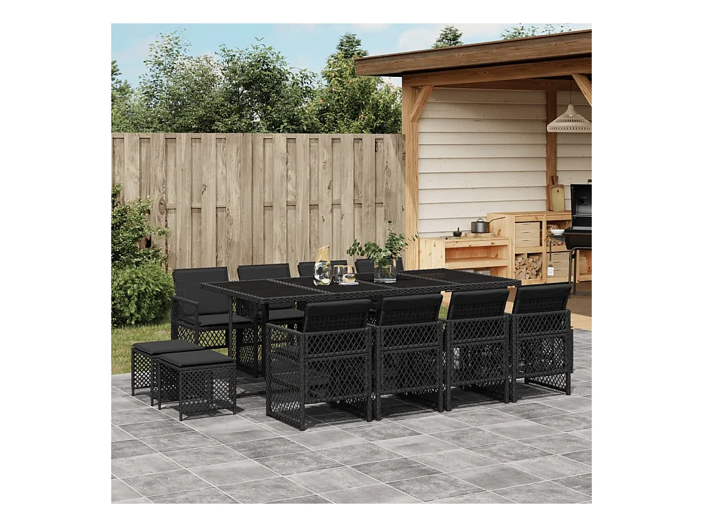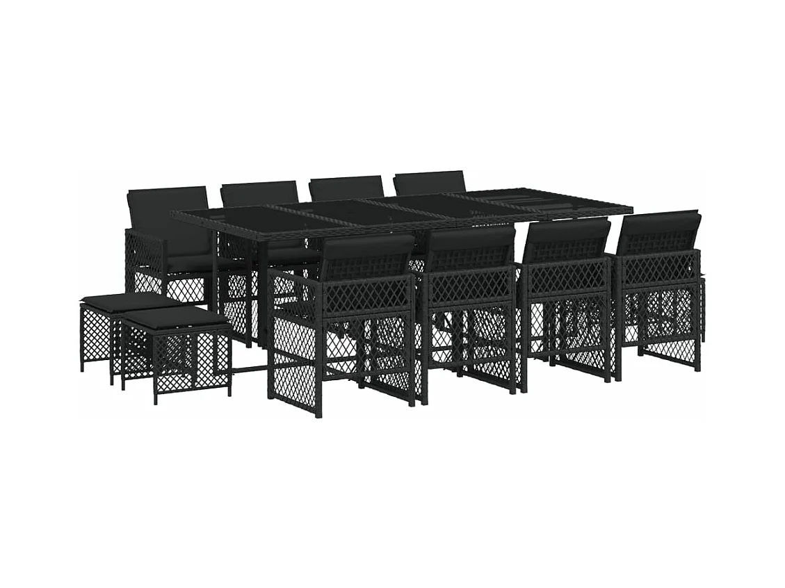 13 peças conjunto de jantar parajardim com almofadões vime PE preto