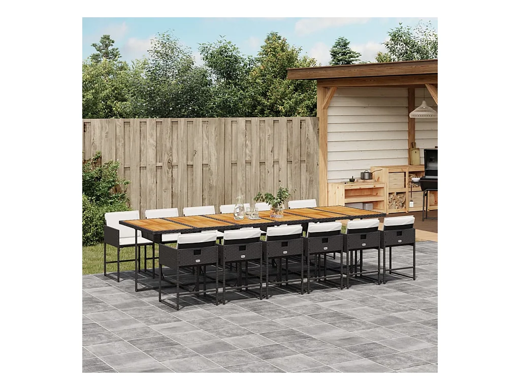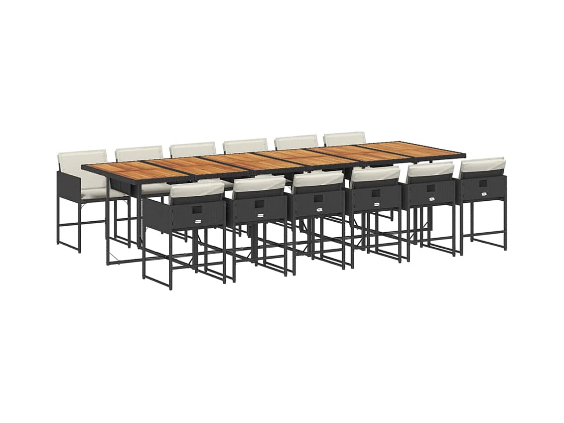 13 peças conjunto de jantar parajardim com almofadões vime PE preto