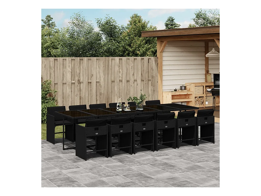 13 peças conjunto de jantar parajardim com almofadões vime PE preto