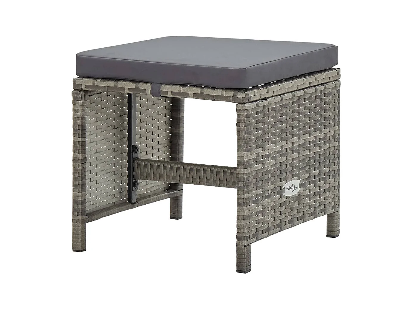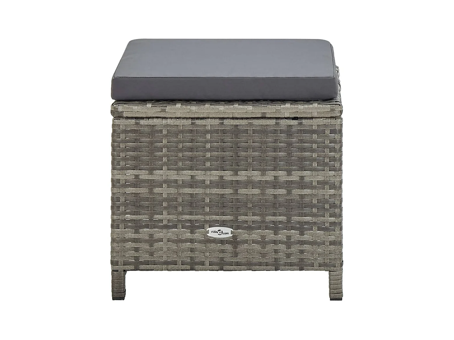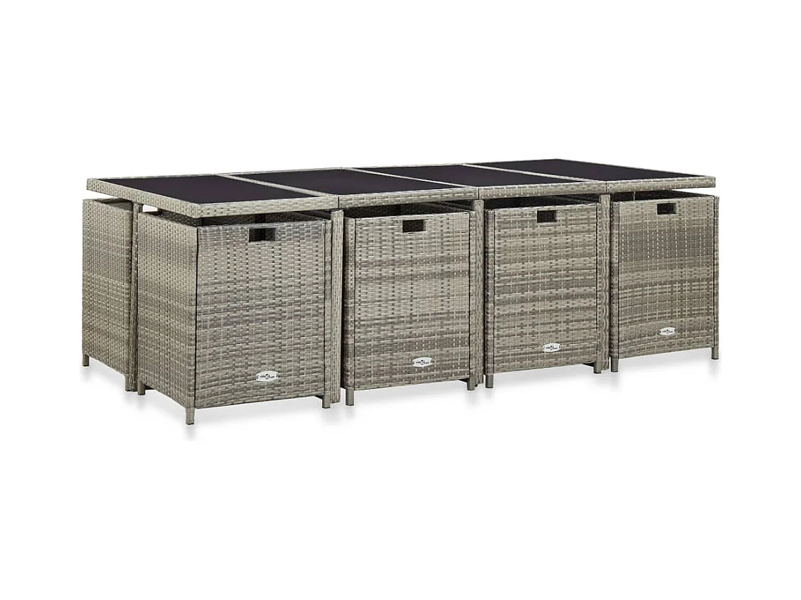 9 peças conjunto jantar exterior c/ almofadões vime PE cinzento