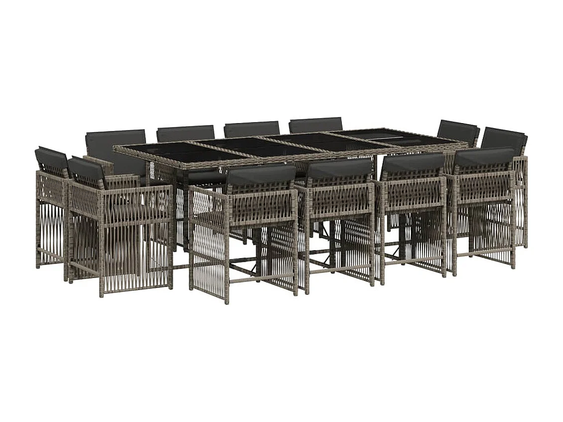 13 peças conjunto jantar para jardim com almofadões vime PE cinzento