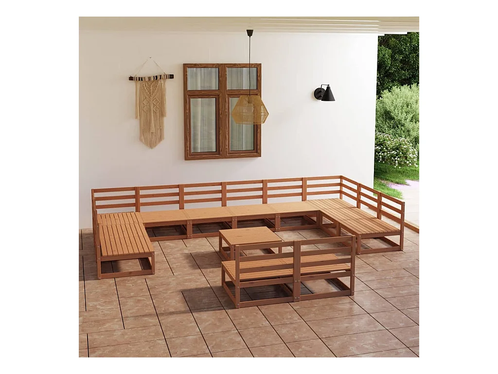 10 peças conjunto lounge de jardim pinho maciço castanho mel