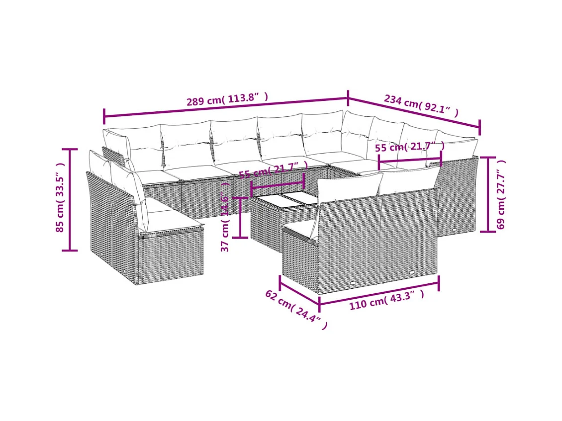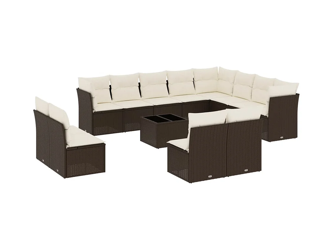 13 peças conjunto sofás para jardim com almofadões vime PE castanho