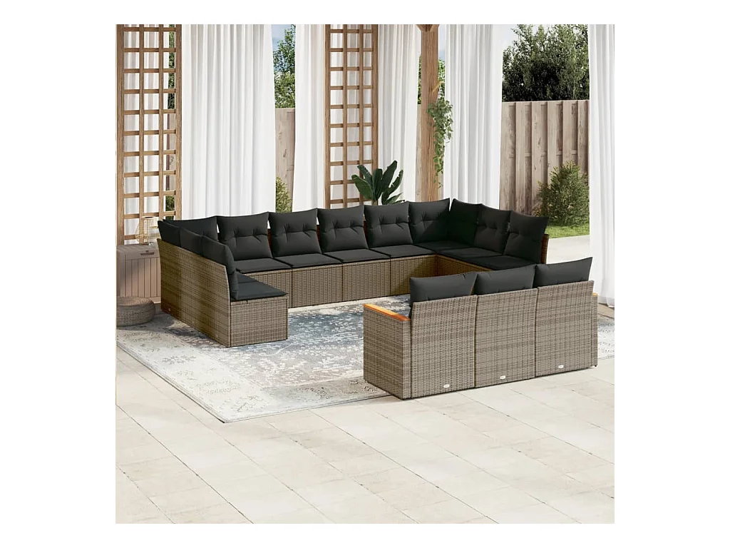 13 pcs conjunto sofás p/ jardim c/ almofadões vime PE cinzento