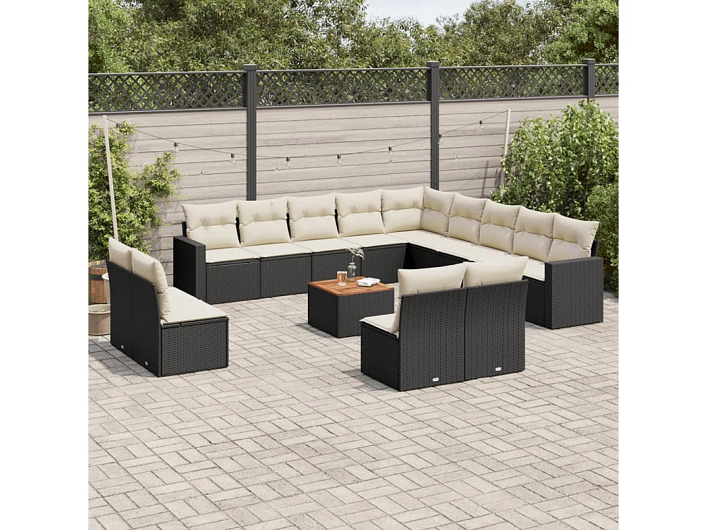 Móveis de jardim com almofadas 14 unidades de resina tecida preta