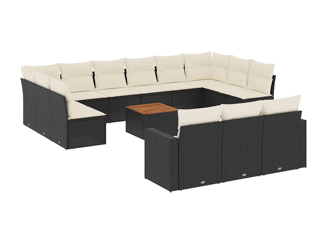 Móveis de jardim com almofadas 14 unidades de resina tecida preta