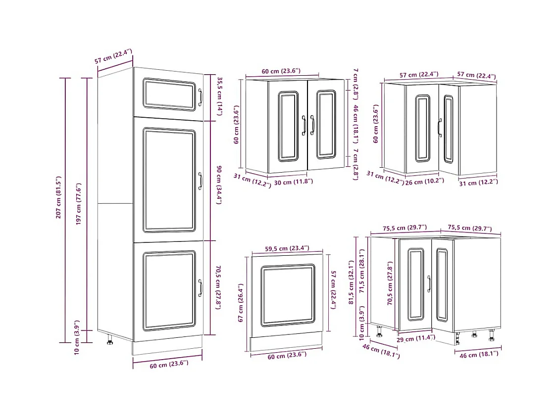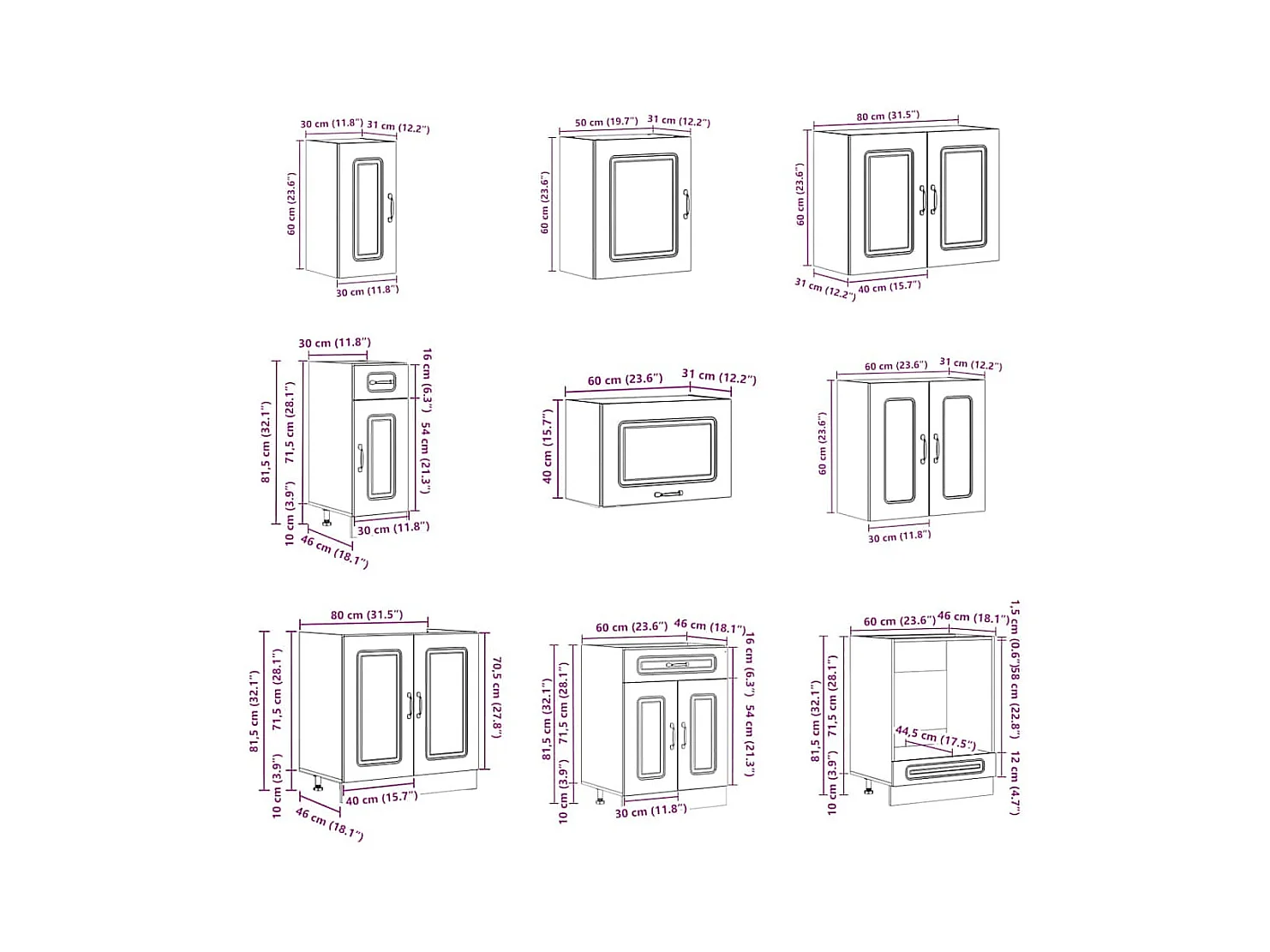 11 pcs armário de cozinha conjunto deriv. madeira Lyon madeira velha