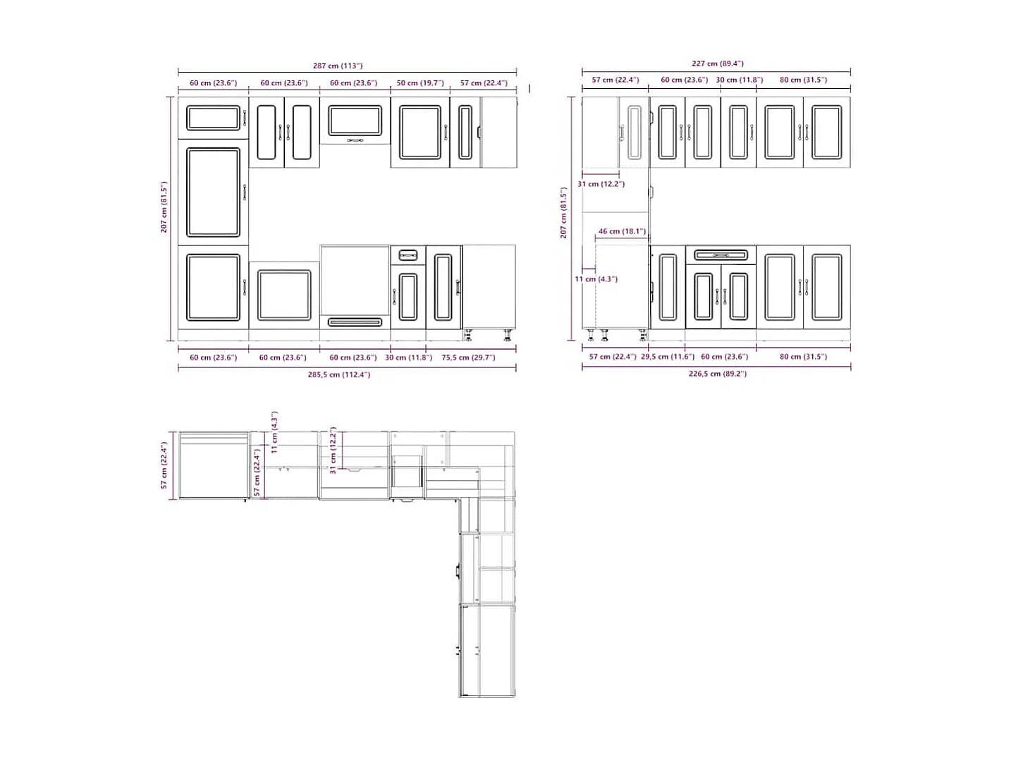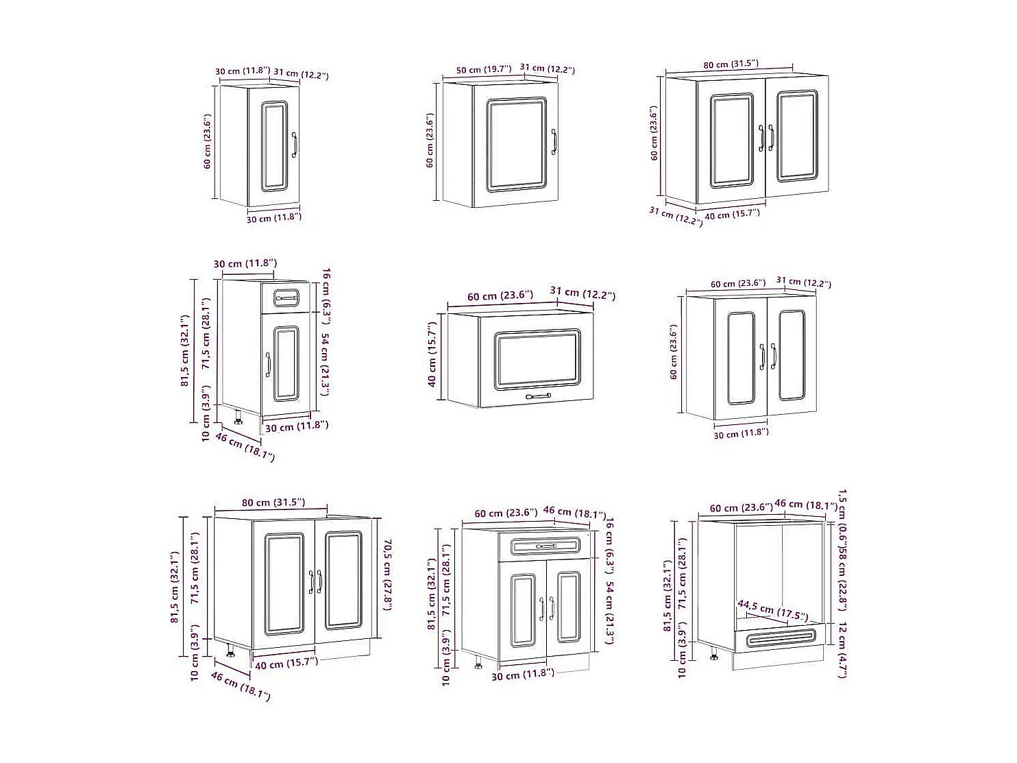 14 peças armário de cozinha conjunto Kalmar carvalho artesanal