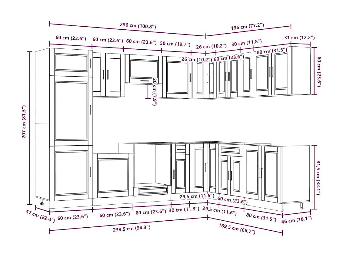 14 peças armário de cozinha conjunto Kalmar cinza sonoma