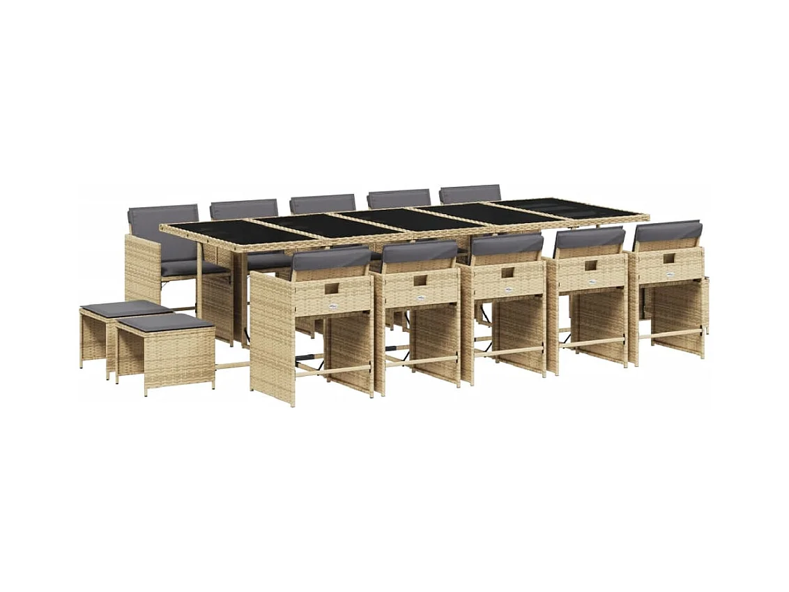 15 pcs conjunto de jantar p/ jardim com almofadões vime PE bege