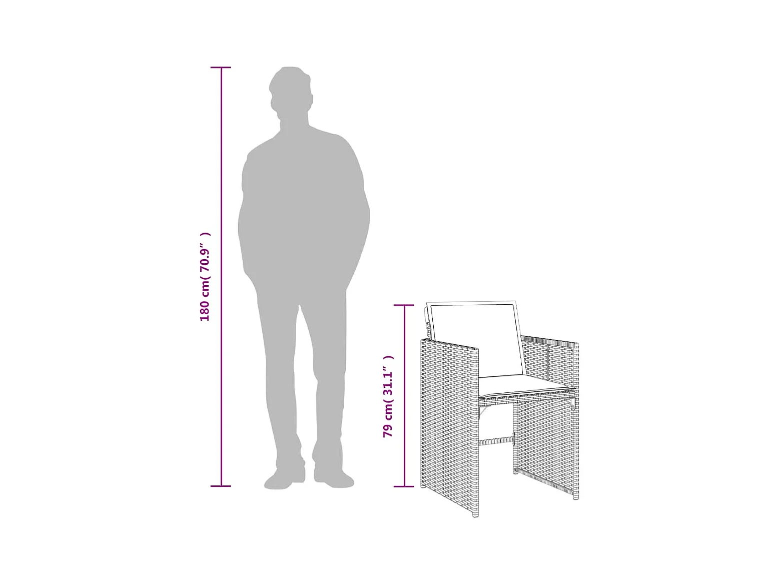 15 pcs conjunto jantar p/ jardim c/ almofadões vime PE cinzento