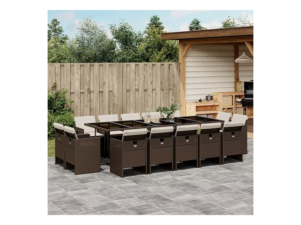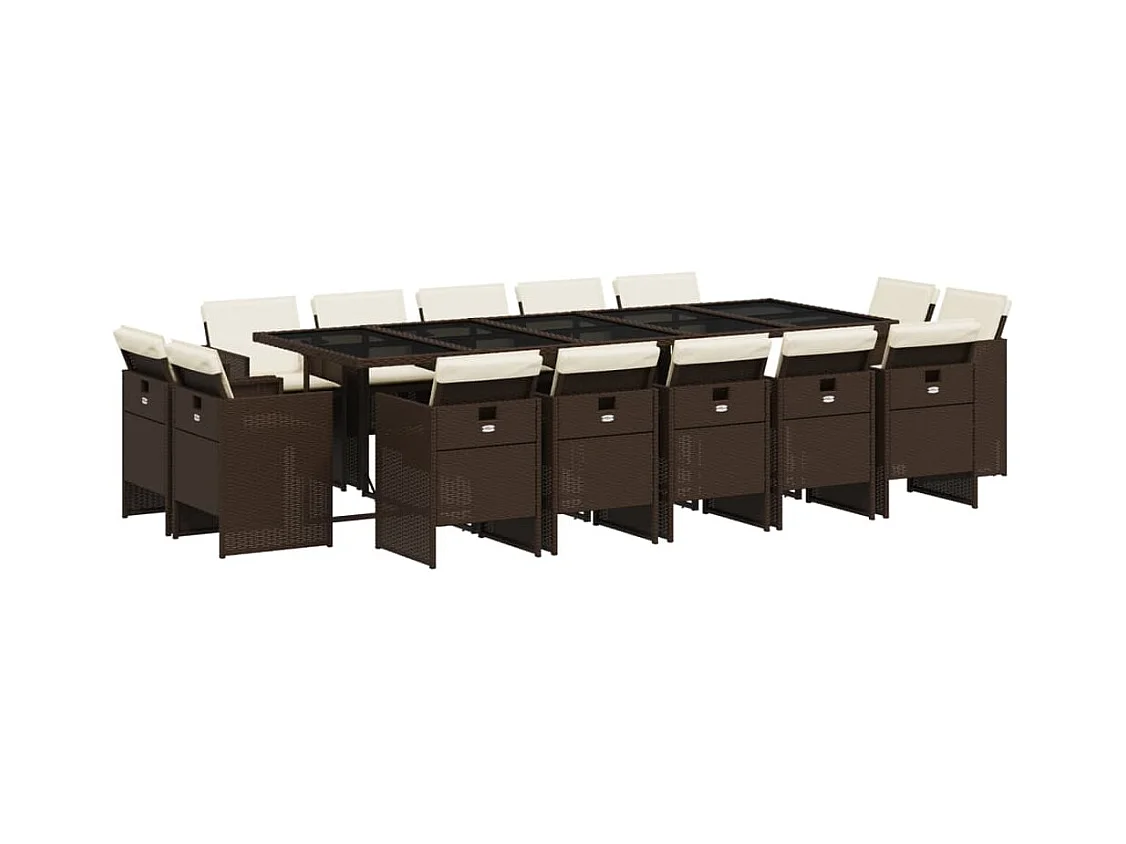 15 pcs conjunto jantar p/ jardim c/ almofadões vime PE castanho