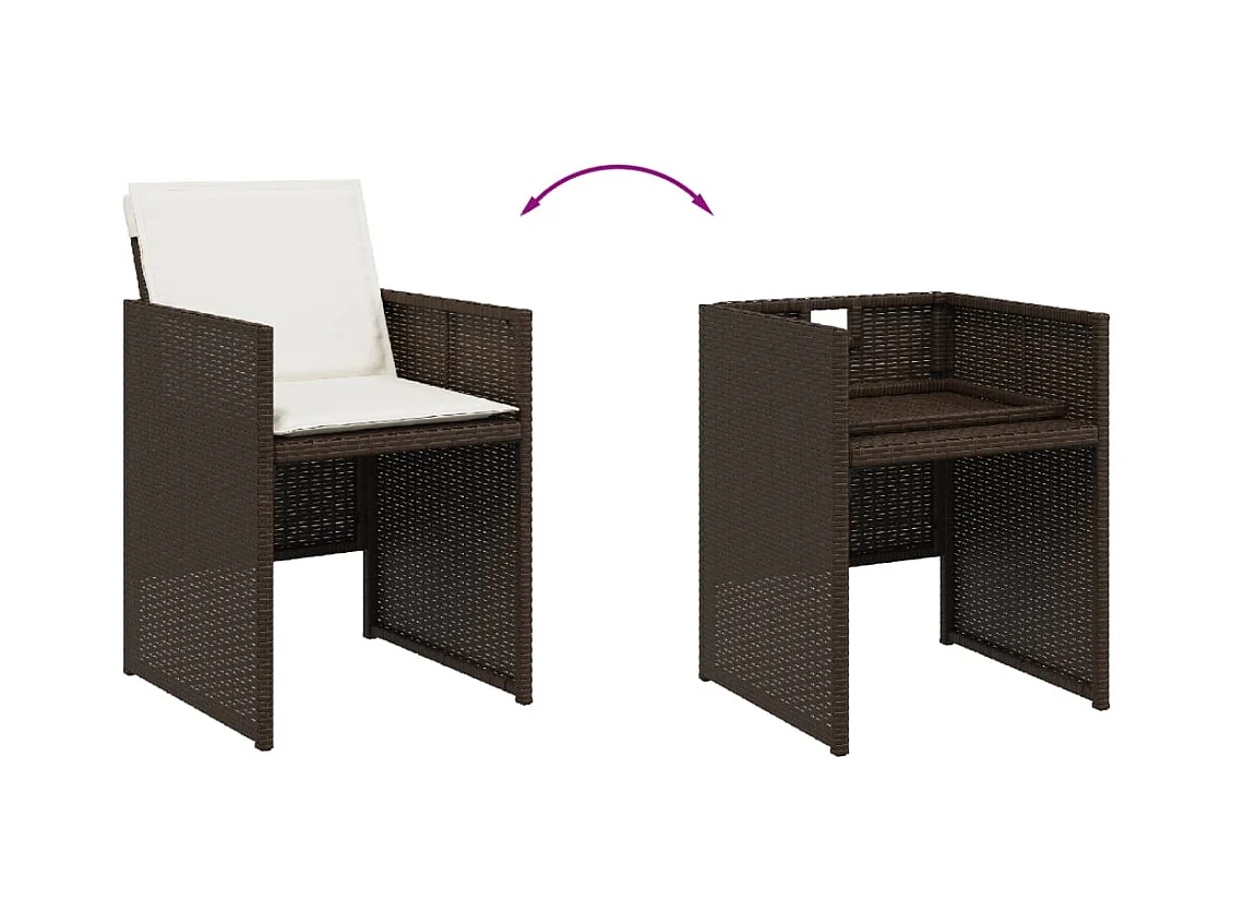 11 pcs conjunto jantar p/ jardim c/ almofadões vime PE castanho
