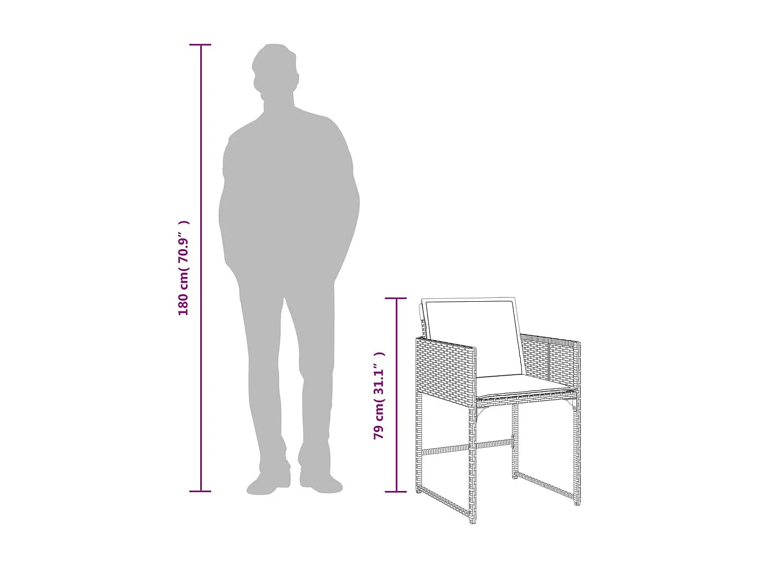 15 pcs conjunto jantar p/ jardim c/ almofadões vime PE cinzento