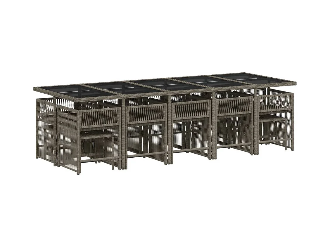 15 pcs conjunto jantar p/ jardim c/ almofadões vime PE cinzento