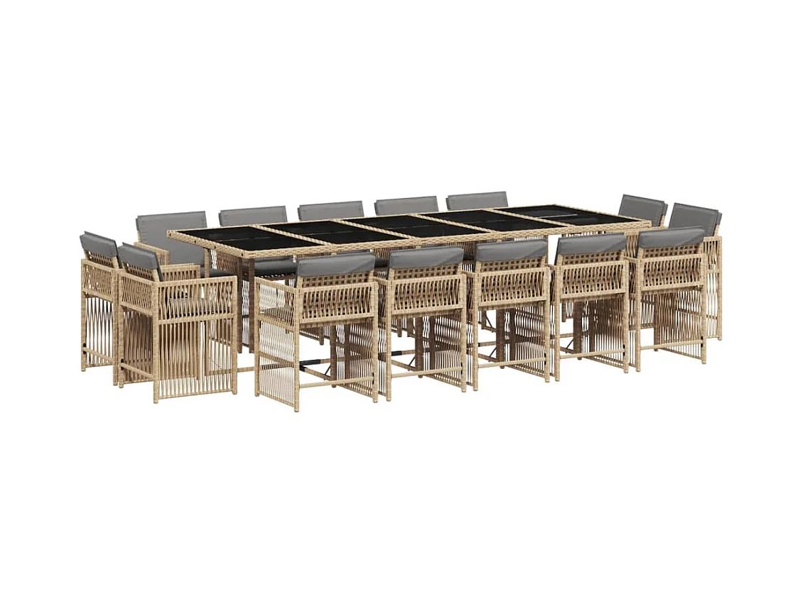 15 peças conj. jantar jardim com almofadões vime PE bege misturado