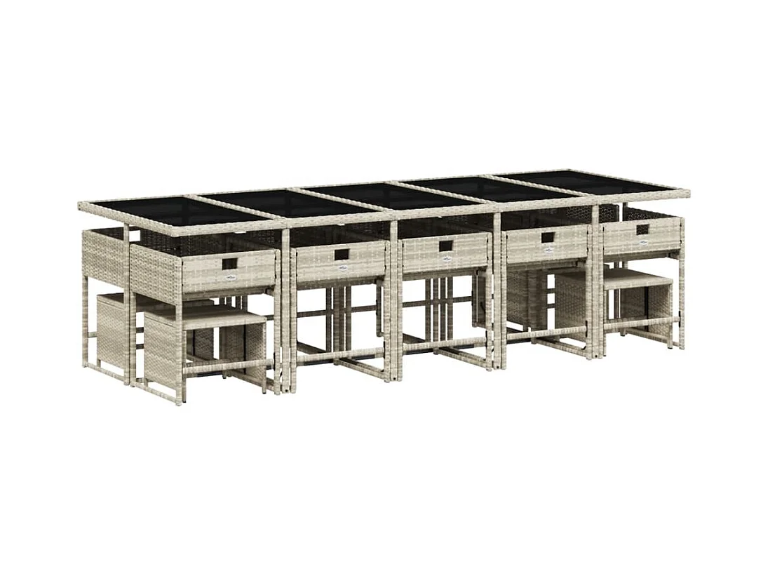 15 peças conj. jantar jardim com almofadões vime PE cinzento-claro