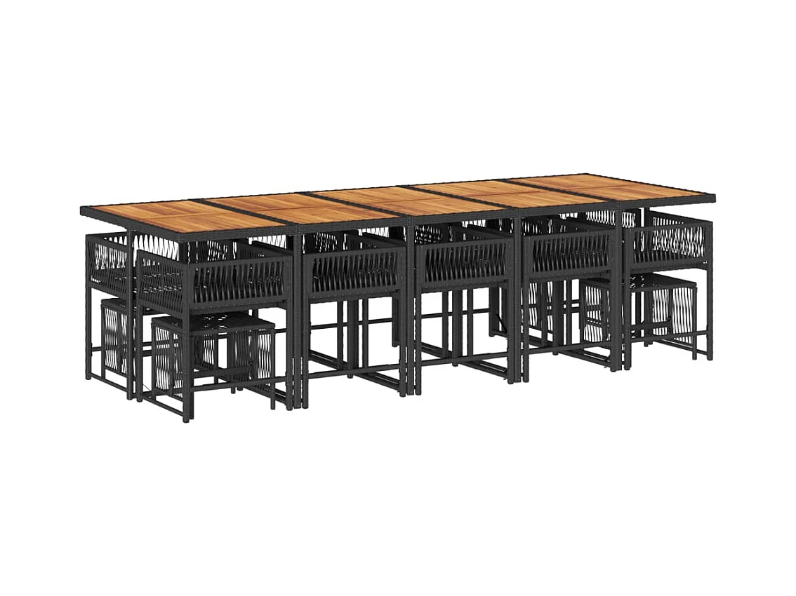15 peças conjunto de jantar parajardim com almofadões vime PE preto