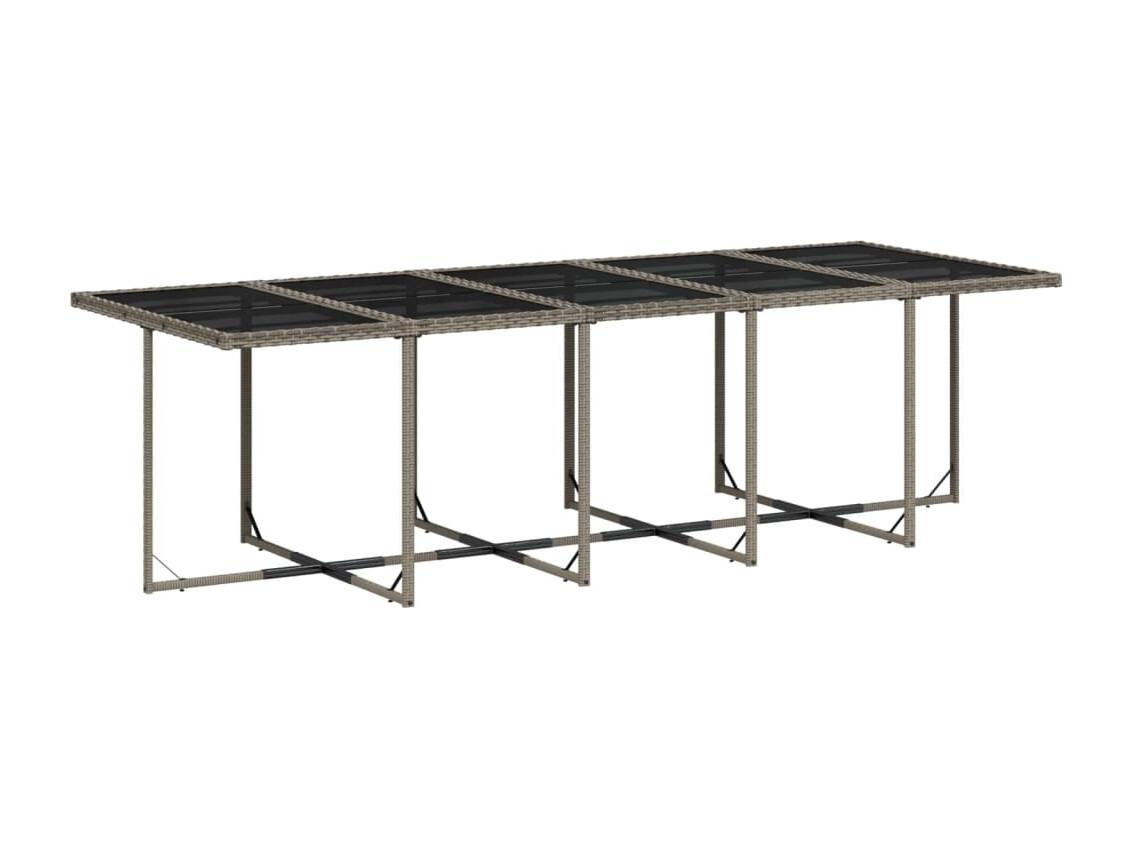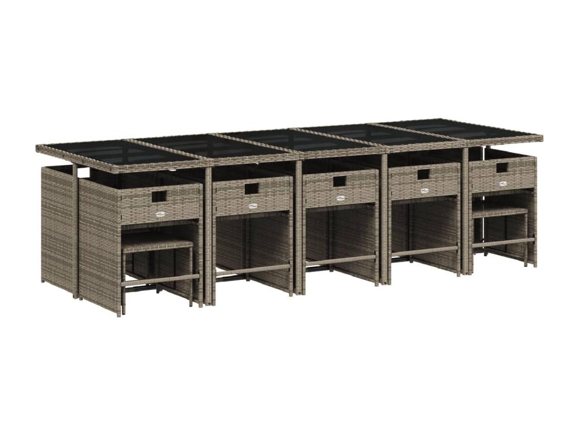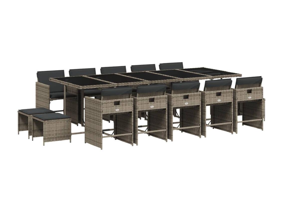 15 peças conj. jantar jardim com almofadões vime PE cinzento-claro