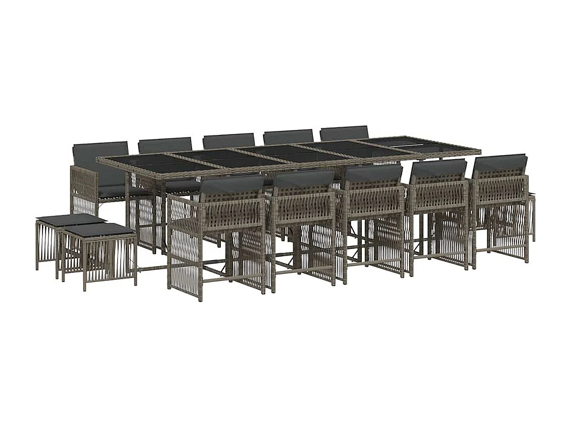 15 peças conjunto jantar para jardim com almofadões vime PE cinzento