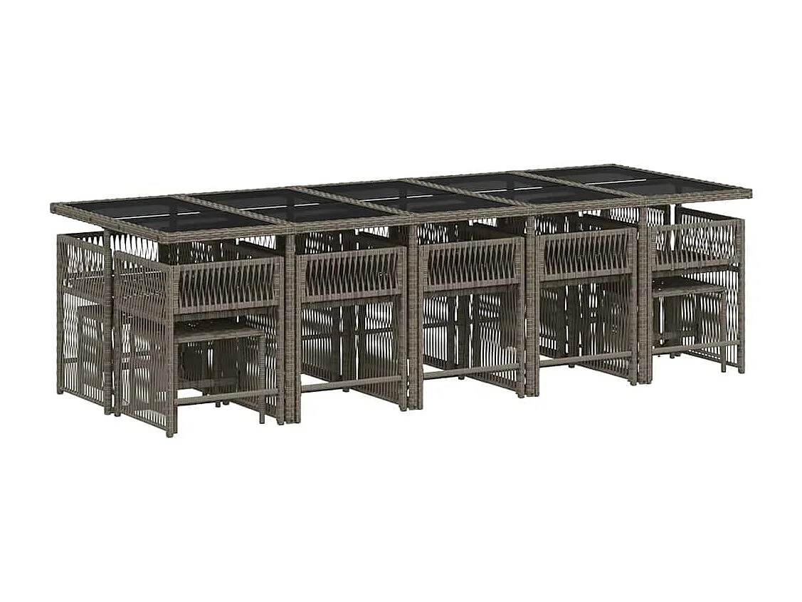 15 peças conj. jantar jardim com almofadões vime PE cinzento-claro