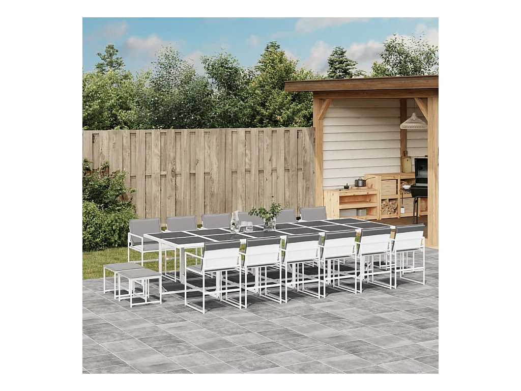 17 pcs conj. de jantar p/ jardim c/ almofadões textilene branco