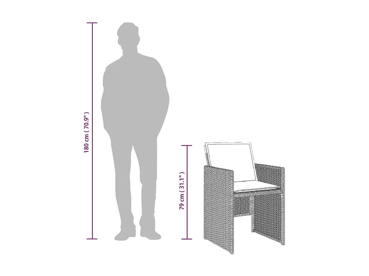 17 pcs conj. jantar jardim c/ almofadões vime PE cinzento-claro