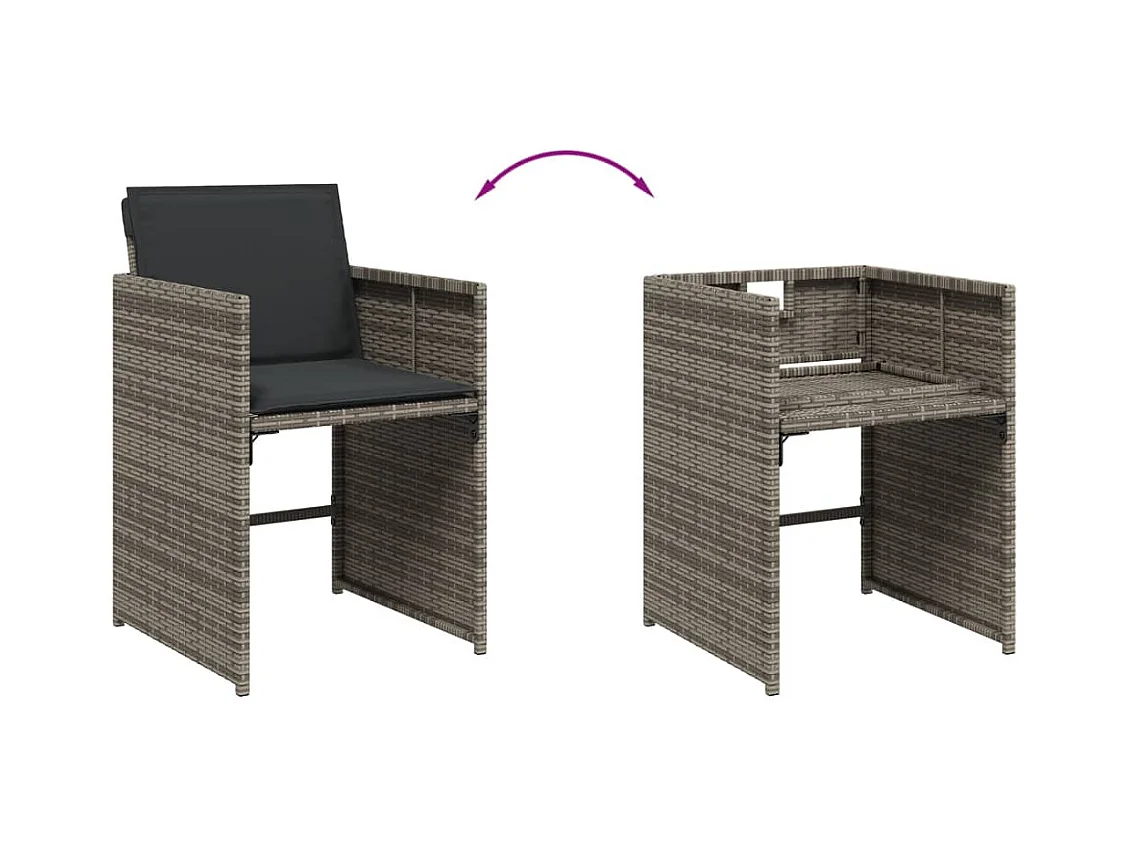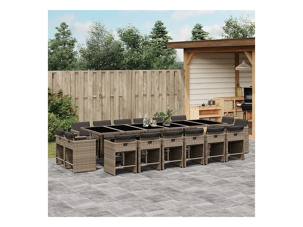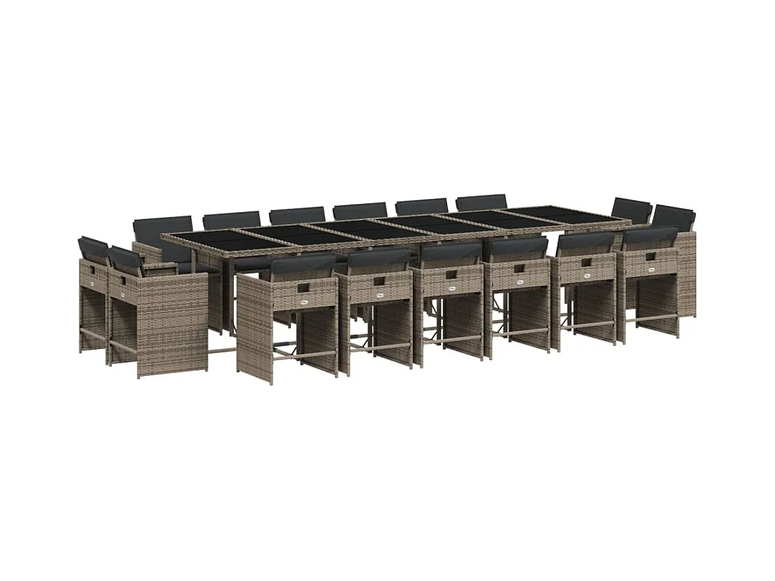 17 peças conj. de jantar para jardim com almofadões vime PE cinzento