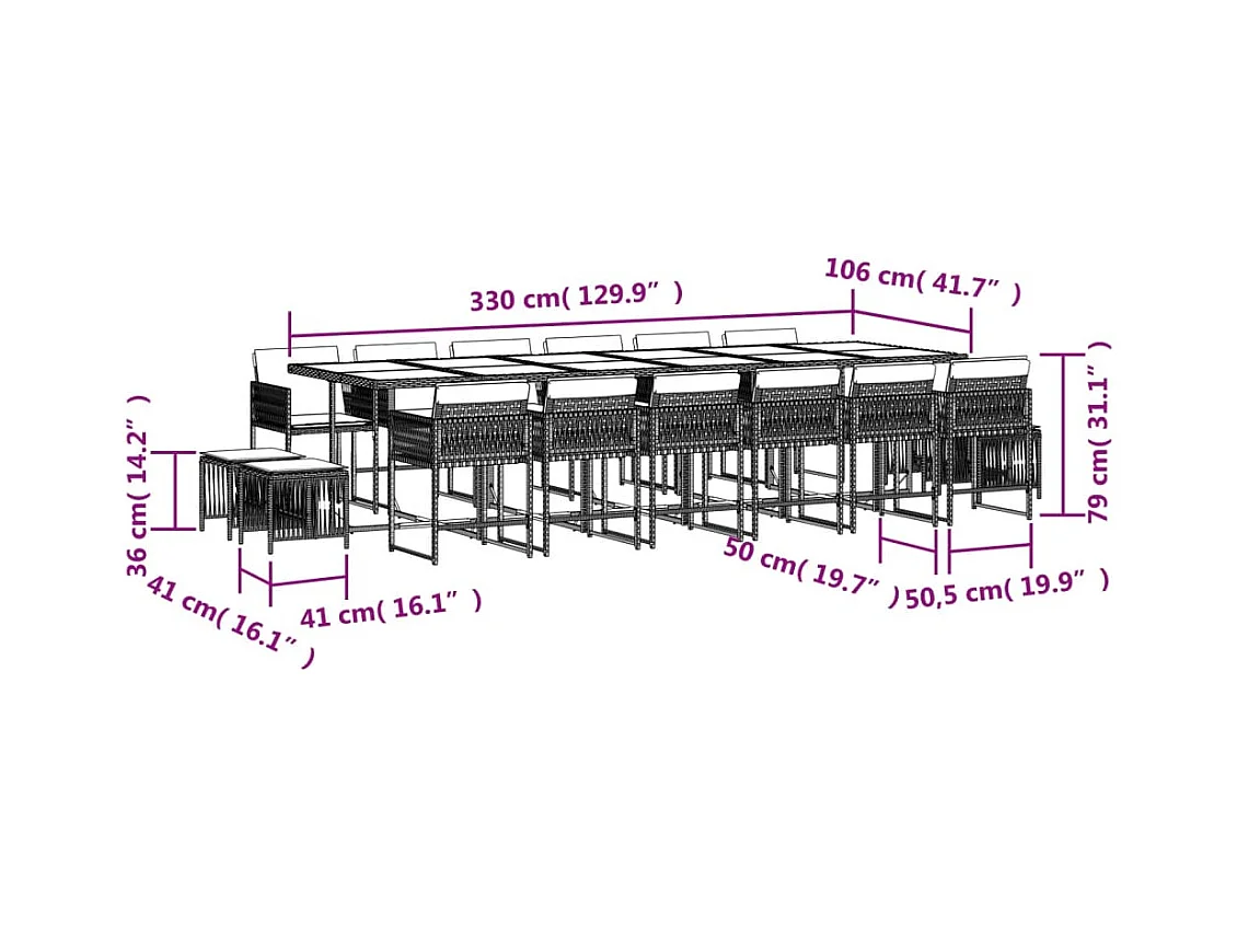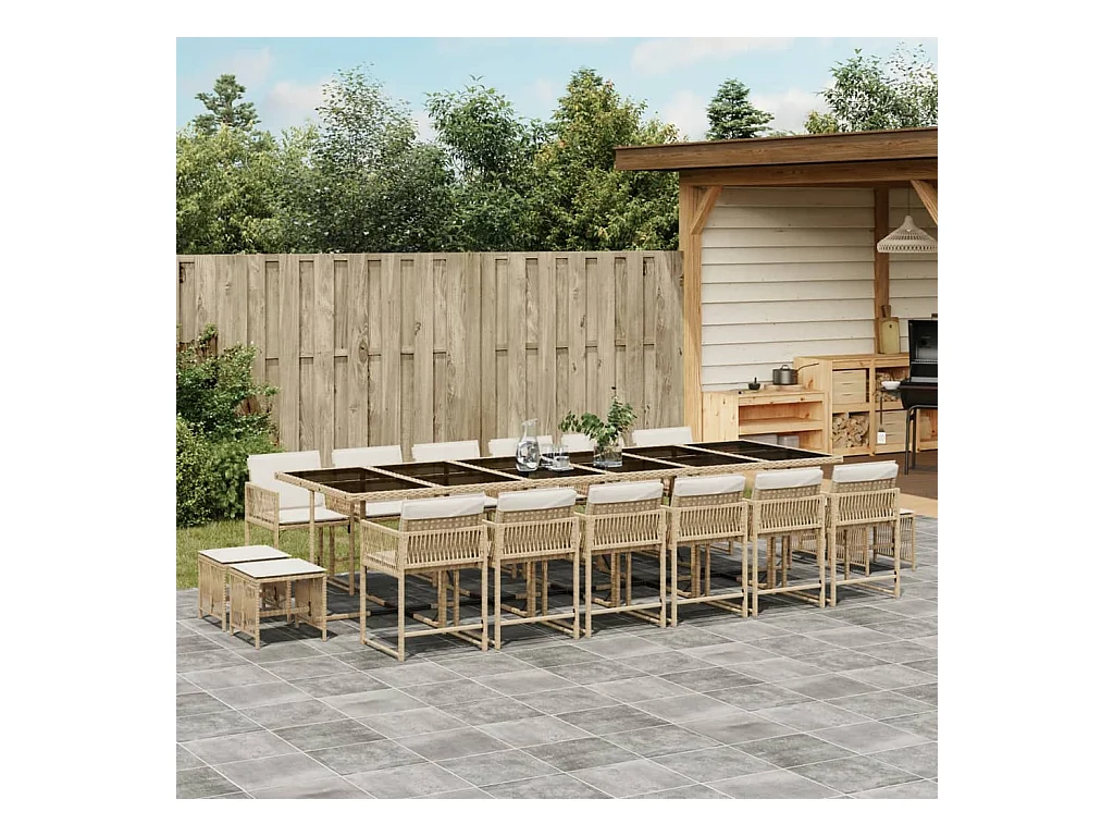 17 peças conjunto de jantar para jardim com almofadões vime PE bege