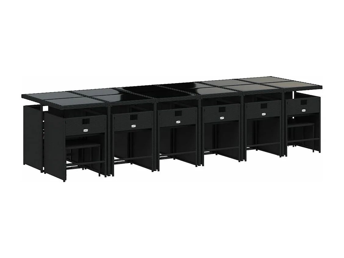 17 peças conjunto de jantar para jardim com almofadões vime PE preto