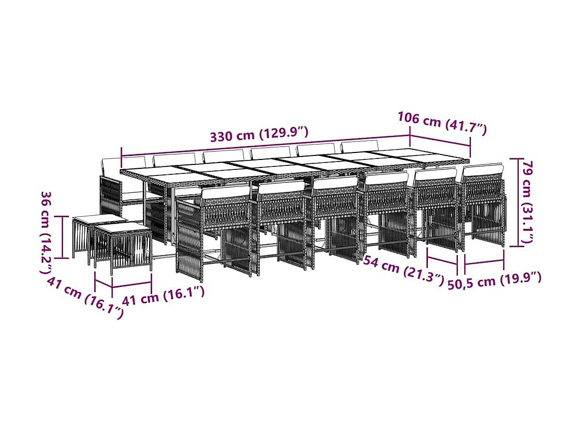 17 peças conjunto de jantar para jardim com almofadões vime PE preto
