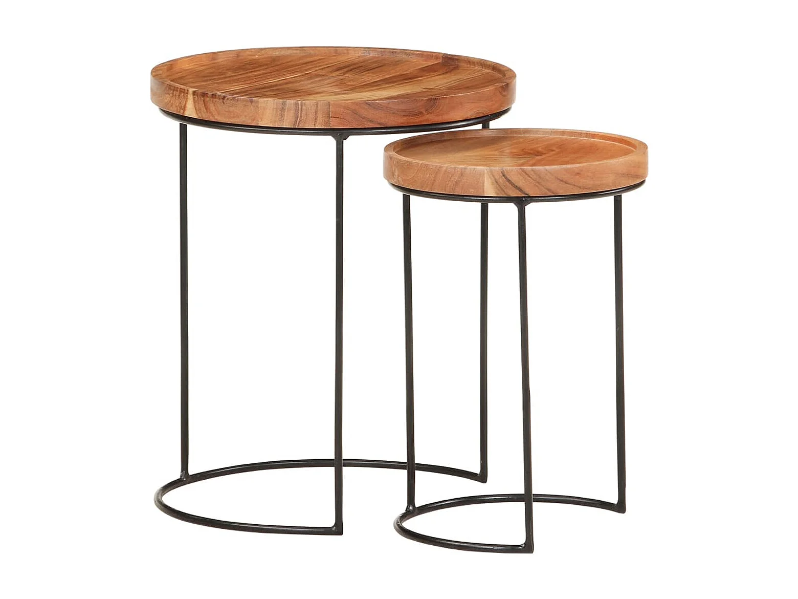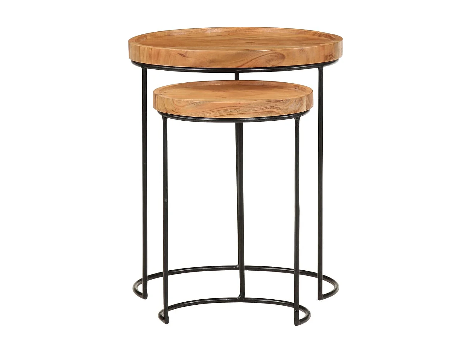 2 pcs conj. de mesas de centro madeira de acácia maciça e aço