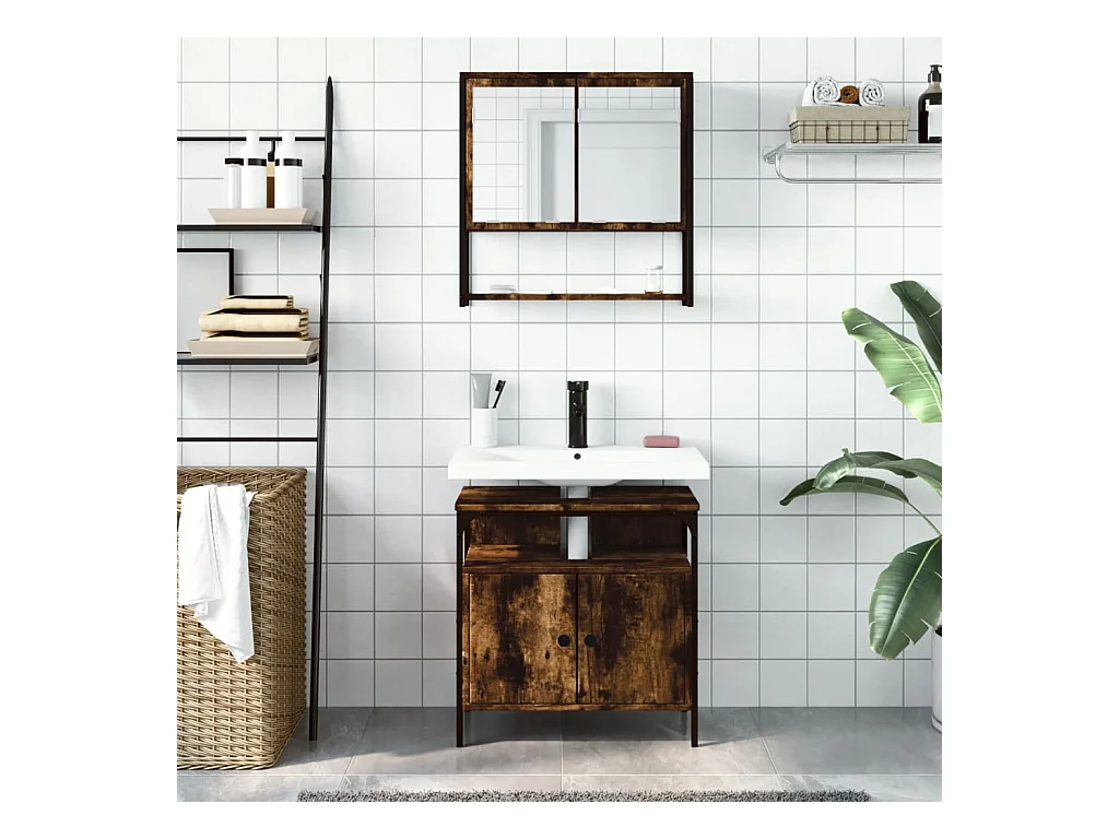 3 pcs conjunto de móveis WC madeira processada carvalho fumado PT777435