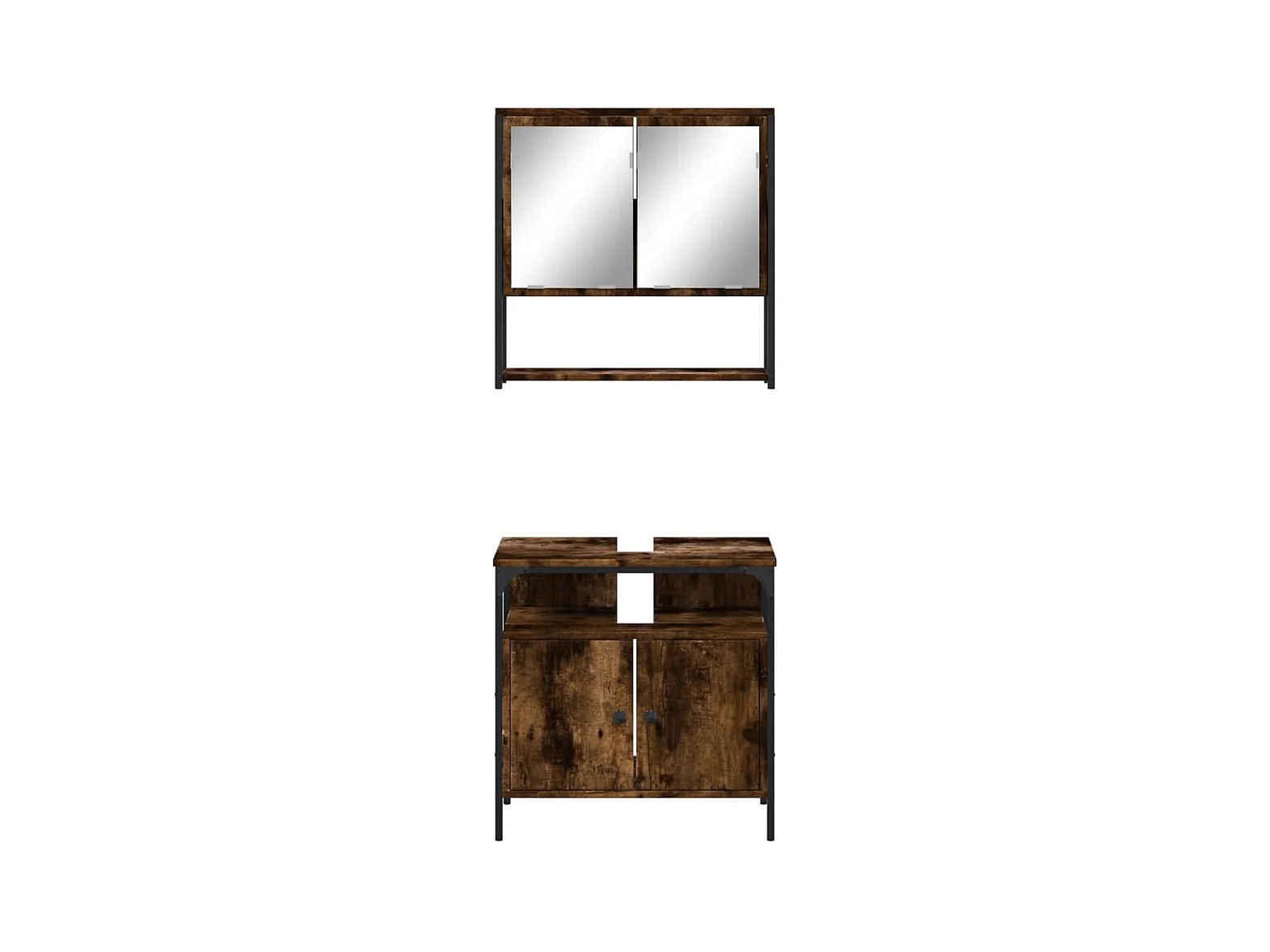 2 pcs conj. móveis casa de banho derivados madeira cor fumado PT708919