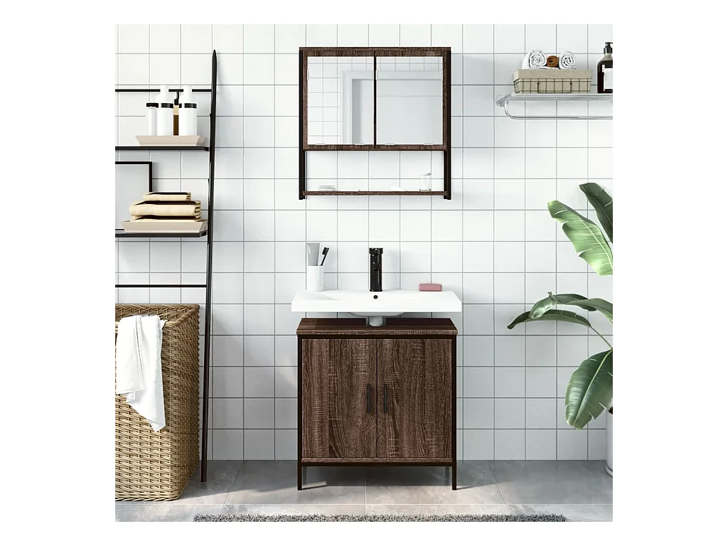 3 pcs conjunto de móveis WC madeira processada carvalho fumado PT777435