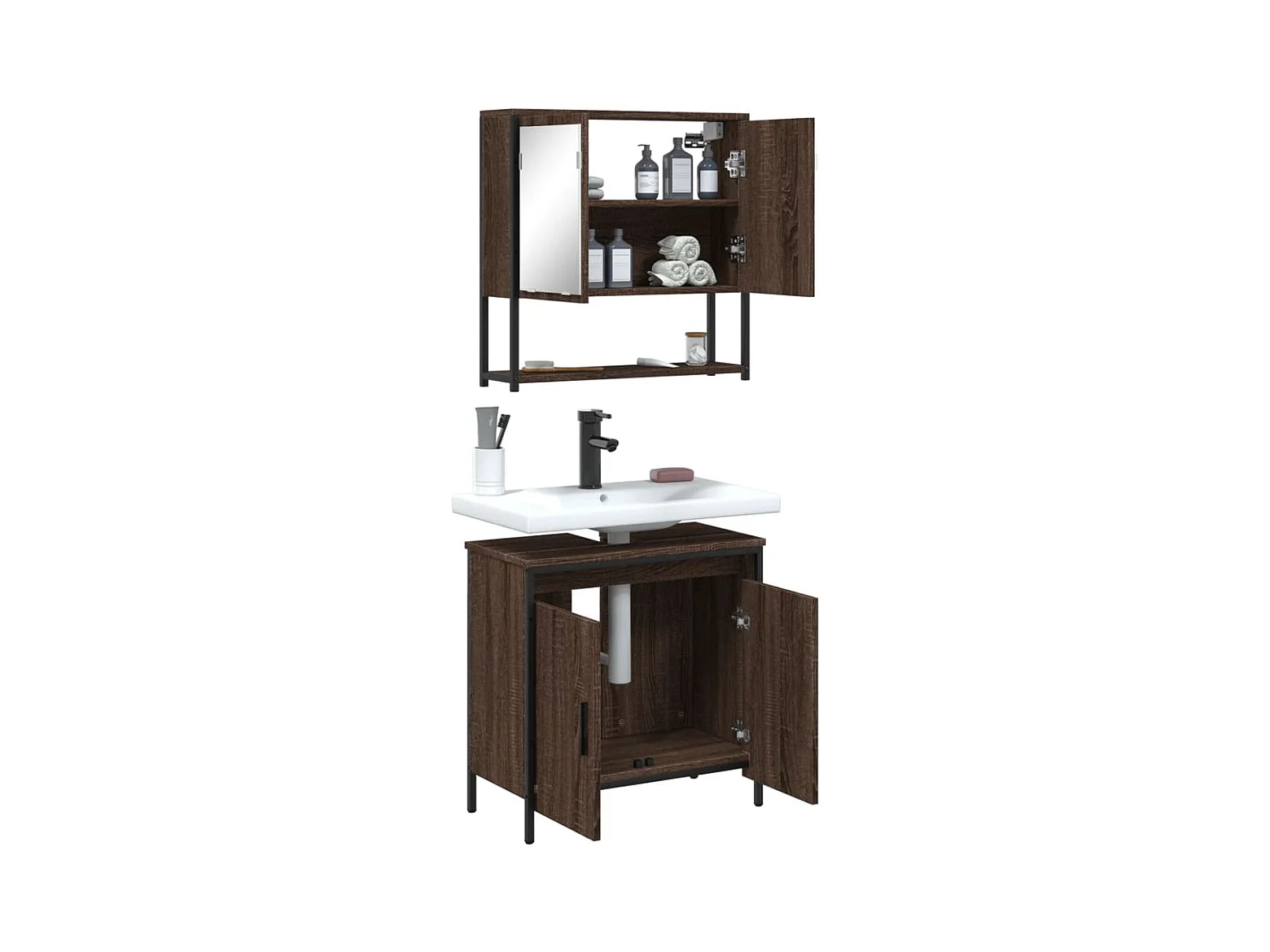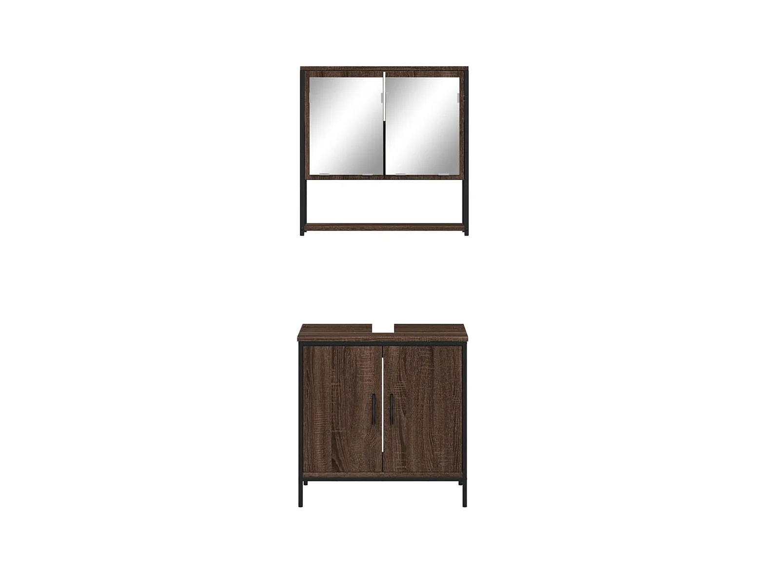 2 pcs conj. móveis casa de banho derivados madeira cor fumado PT708919