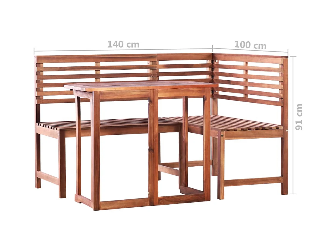 3 pcs conjunto jantar dobrável p/ jardim madeira acácia maciça