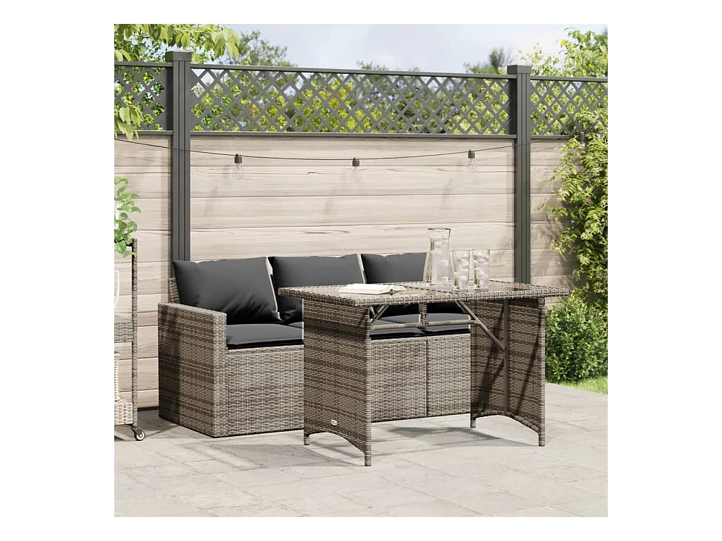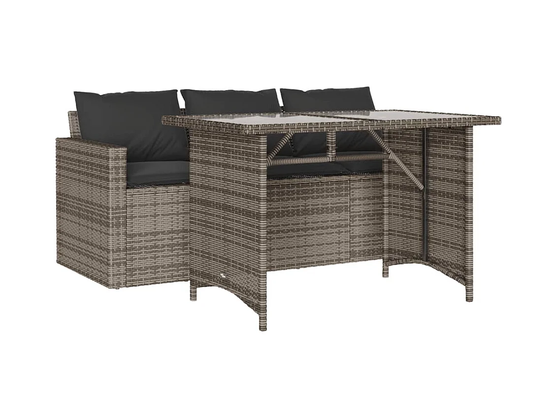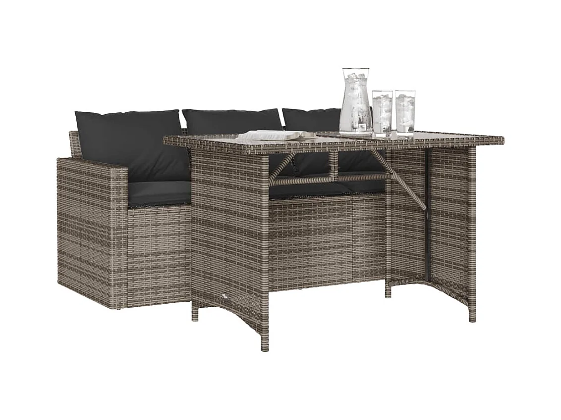 2 pcs conjunto de jantar p/ jardim c/ almofadões vime PE cinza PT462065