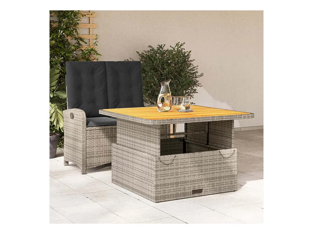 2 pcs conjunto de jantar p/ jardim c/ almofadões vime PE cinza PT883402