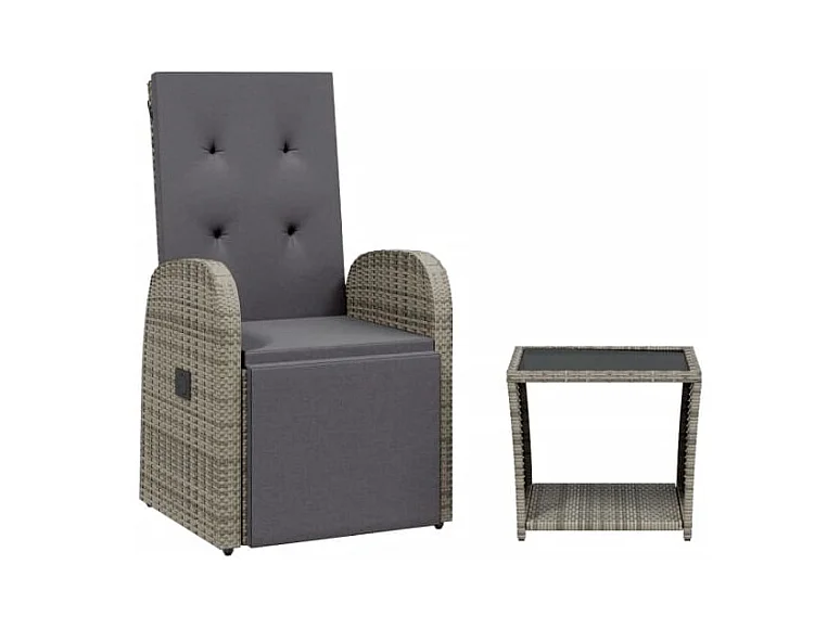 2 pcs conjunto de jantar p/ jardim c/ almofadões vime PE cinza PT869953