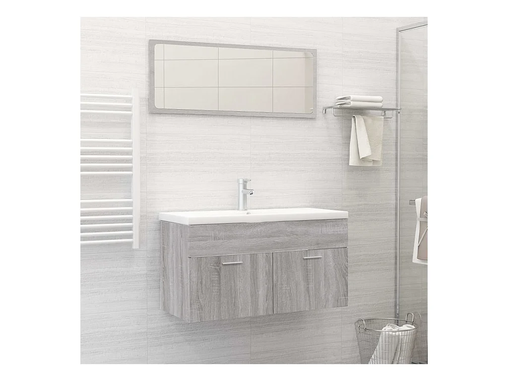 3 pcs Conjunto móveis casa de banho madeira proc. cinza sonoma PT971236